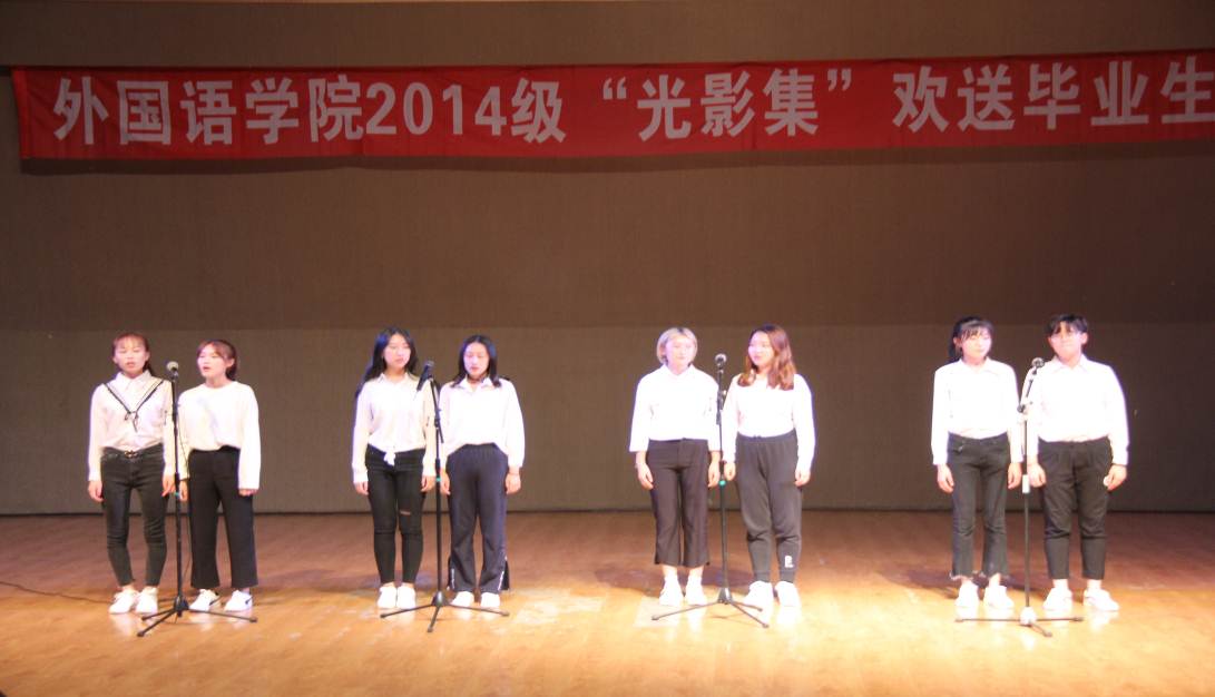 于光影年华,集正值青春的少年,音乐开始时,享受青春,太阳升起又是新的一天需要努力奋斗,伴随着四位同学的歌声,本次晚会圆满结束,希望2014级的学长学姐在此告别青春,扬帆起航。
