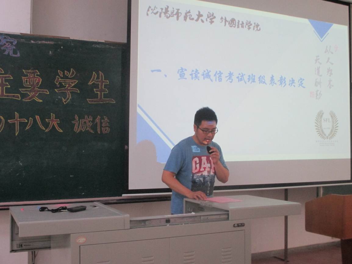会上,辅导员张帆老师宣读了对上学期参加免监考诚信考场班级的表彰决定,公布了参加365英国上市公司第十五个诚信活动月的诚信考场班级名单。他鼓励广老员工以这些先进集体为榜样,积极参与“免监考”诚信考试和诚信教育系列活动,并在此过程中不断提升与塑造诚信品质。接下来,公司团委副书记刘季琳同学带领全体与会员工进行了诚信考试宣誓。