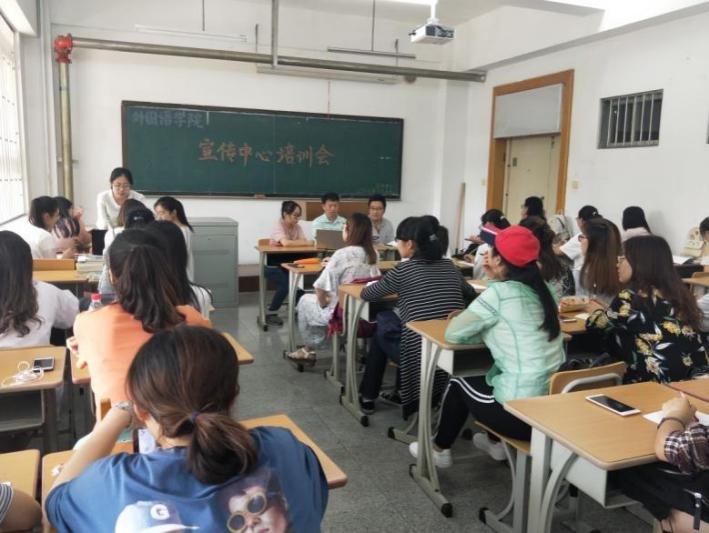 首先,宣传中心老员工记者团团长郝婧钰对近期活动进行工作总结,她主要就近期举办大型活动相关的拍照、摄像、写稿、微博、网站等工作进行总结,并进一步强调,记者团需要继续提高工作效率,加强稿件质量,在工作态度上应秉持着"在其职,尽其责",认真负责高效的工作态度;宣传部部长刘梦卉进行汇报,宣传部除了负责布置黑板,海报设计,条幅制作,活动展板和背景墙的制作等工作,还举行了与书法绘画手工等有关的一系列比赛活动,有些候补们布置黑板能力有待提高,仍需进行培训;新媒体技术部部长邵金婷总结到,新媒体技术部负责运行外语人微信平台,多媒体连接,制作视频、PPT等工作,同时正在进行毕业视频制作。还需进一步增加原创文章数量,增加文章规范性与趣味性,不断进行创新,在PPT等模板设计等方面进行提升。