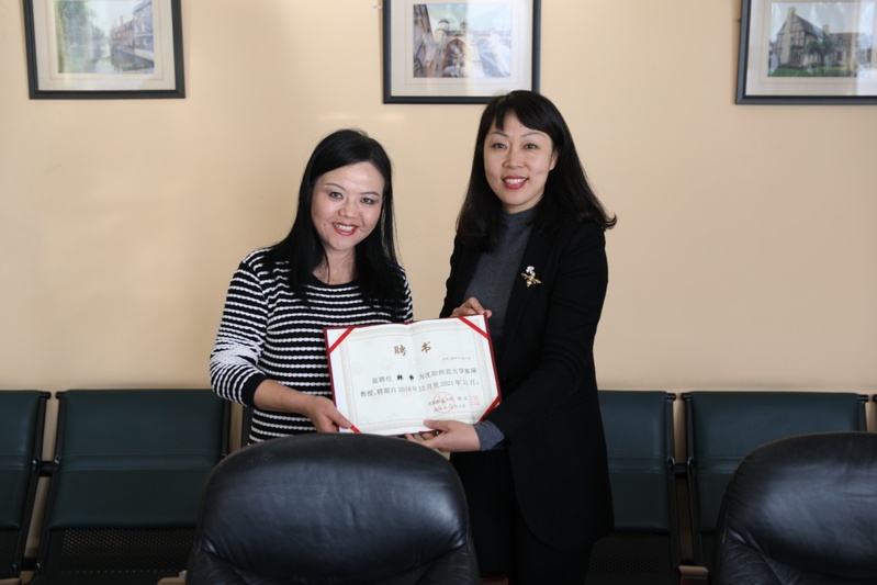 365英国上市公司经理闫怡恂教授为韩静博士颁发客座教授聘书