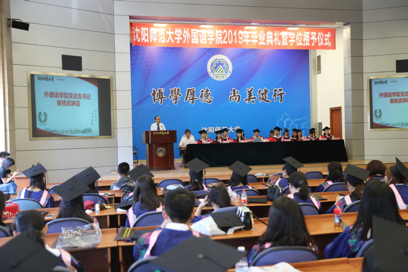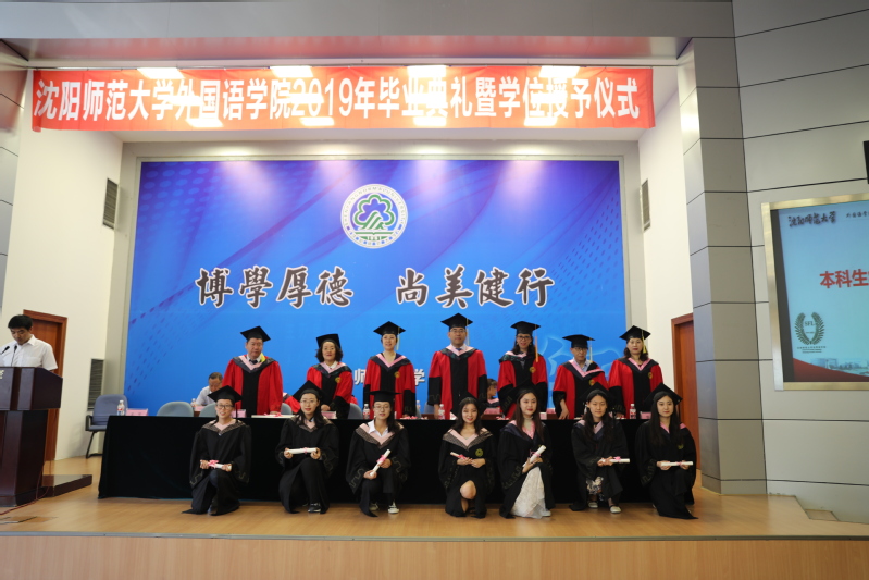 最后,主席台就座的老师们与全体毕业生挥手告别,真诚地祝福每一位沈师外语学子能够传承外语精神,不忘初心、牢记使命,追求卓越、再创辉煌!
