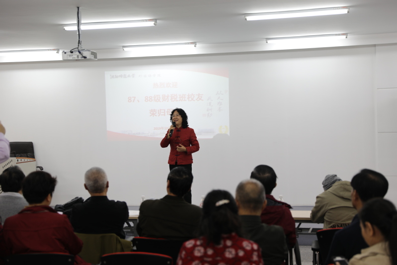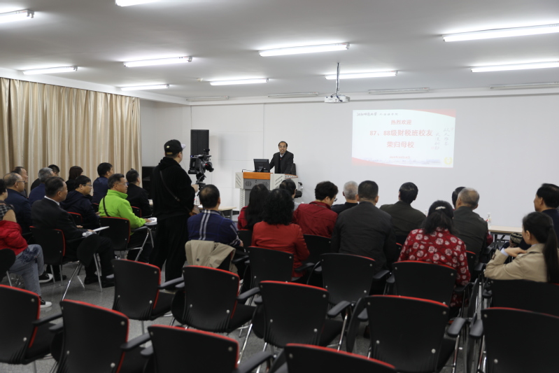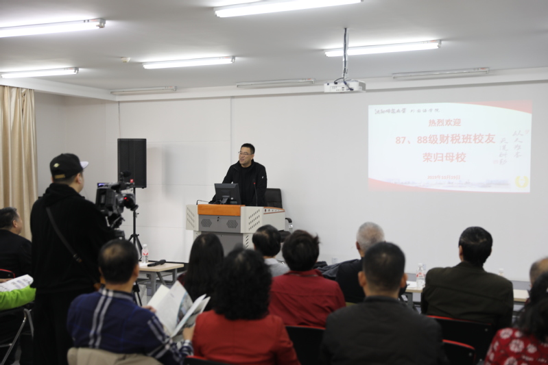 10月19日上午9:00,员工回归母校师生座谈会在信息楼231教室准时开始。外国语公司党总支书记崔桂武,党总支副书记关宇,副经理张成羽、李敏,365英国上市公司退休教师范革新、任承科、史国强、王建会、王晶,财税班班主任许志伟以及来自海外和全国各地的财税班87、88级员工参加了座谈会。座谈会由党总支书记崔桂武主持。