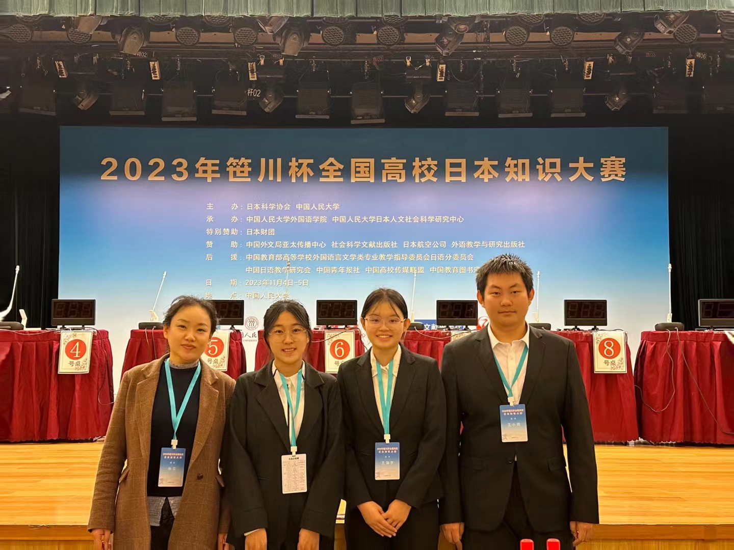2023年11月4日-5日,全国日语知识竞赛“2023年笹川杯全国高校日本知识大赛”在中国人民大学隆重举行。来自全国的97所的高校参加了此次大赛,这是全国大规模的日语专业知识的比赛。