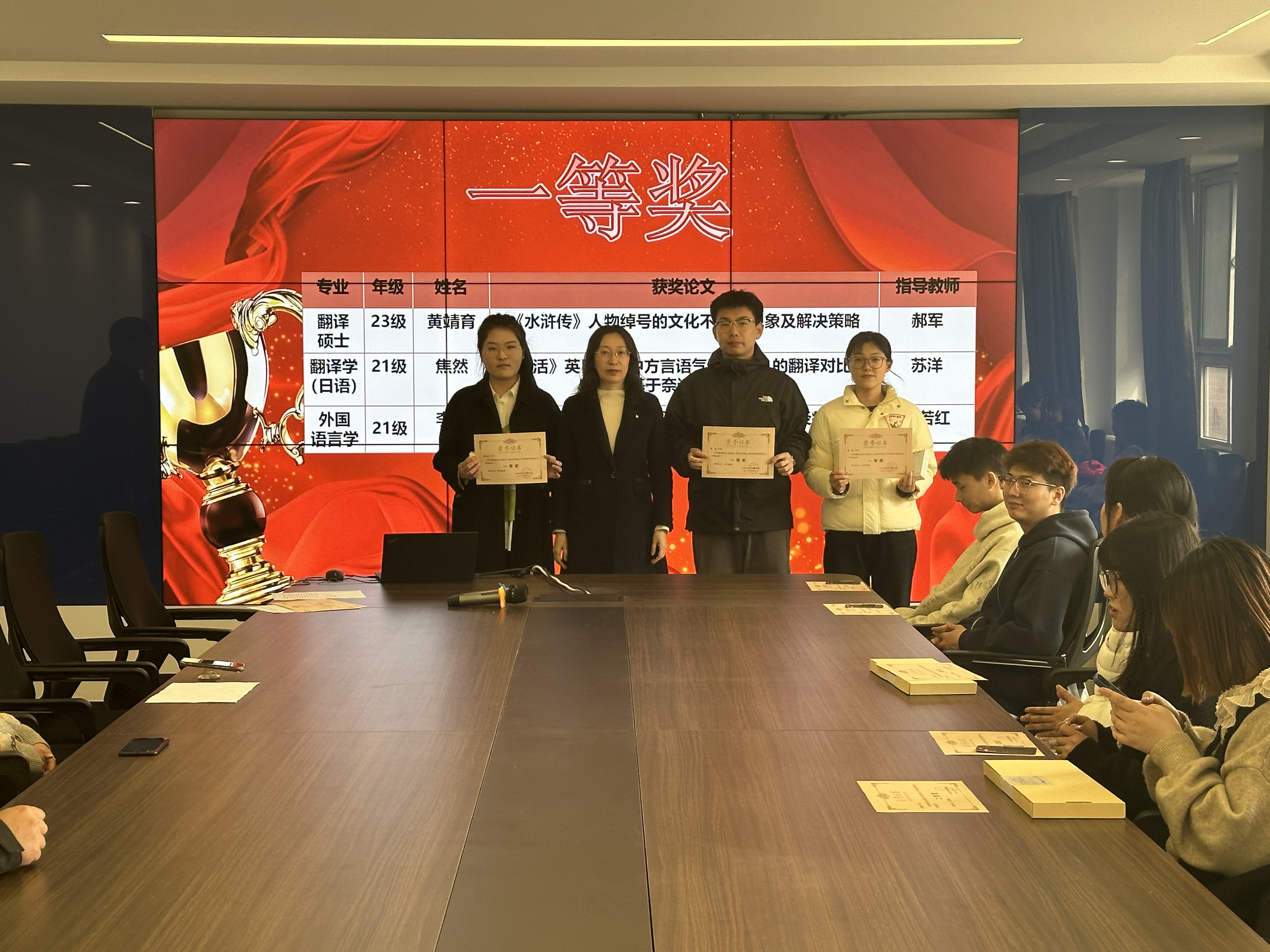 在决赛阶段,按照来稿主题分为文学与语言学、翻译学与翻译硕士三组,参赛选手就论文思路进行汇报,各方向资深教授与青年教师一道进行针对性点评,现场气氛热烈,教师与员工就学术问题展开了激烈的思想碰撞。