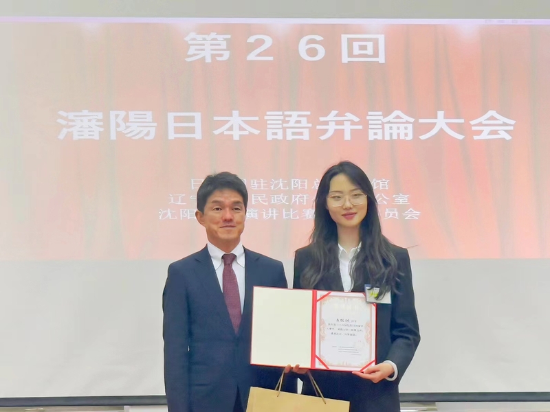 5月26日,第26届沈阳日语演讲大赛在日本国驻沈阳总领事馆文化大厅举行。我院日语专业2020级员工左恬甜代表公司参赛,经过激烈角逐荣获大学专业组三等奖。